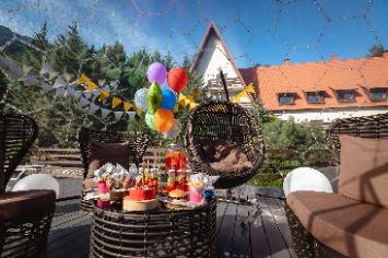 В теплое время года работает крытая и открытая части летней панорамной террасы с видом на амфитеатр Ай-Петри.